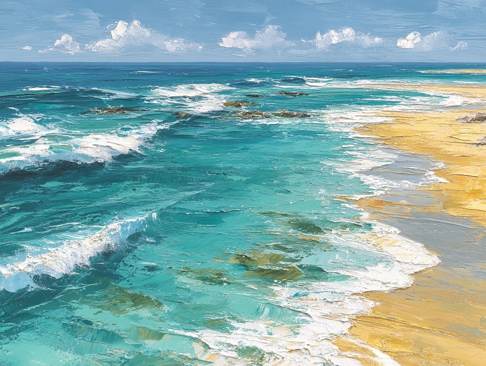 新しい朝を祝うような、力強くも澄んだ波の輝きを。見るたびに心が晴れ渡る、光の旋律をお届けします。