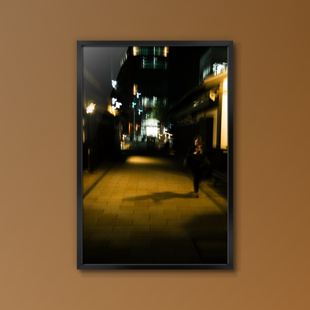 視界を覆う闇と、それを切り裂くような光のストローク。 具象的な風景を光の粒子へと分解し、再構築することで、夜という時間が持つ神秘性を表現しました。 α7IVが捉えた圧倒的な黒の階調の中に、微かな光の余韻が息づいています。 モダンでスタイリッシュな空間に、心地よい緊張感と奥行きを与えるアートピースです。
