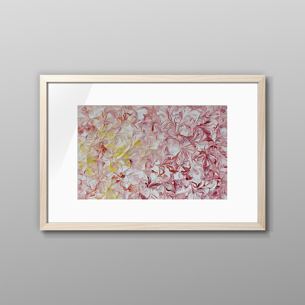 まさに開こうとする花々を表現したこの作品は、生命力にあふれる春の花々が咲き誇らんとする様子をイメージしています。色とりどりの花々が波のように広がり、観る人々に季節の魅力を届ける1枚です。その一瞬の美しさが、心に残る特別な体験を提供します。