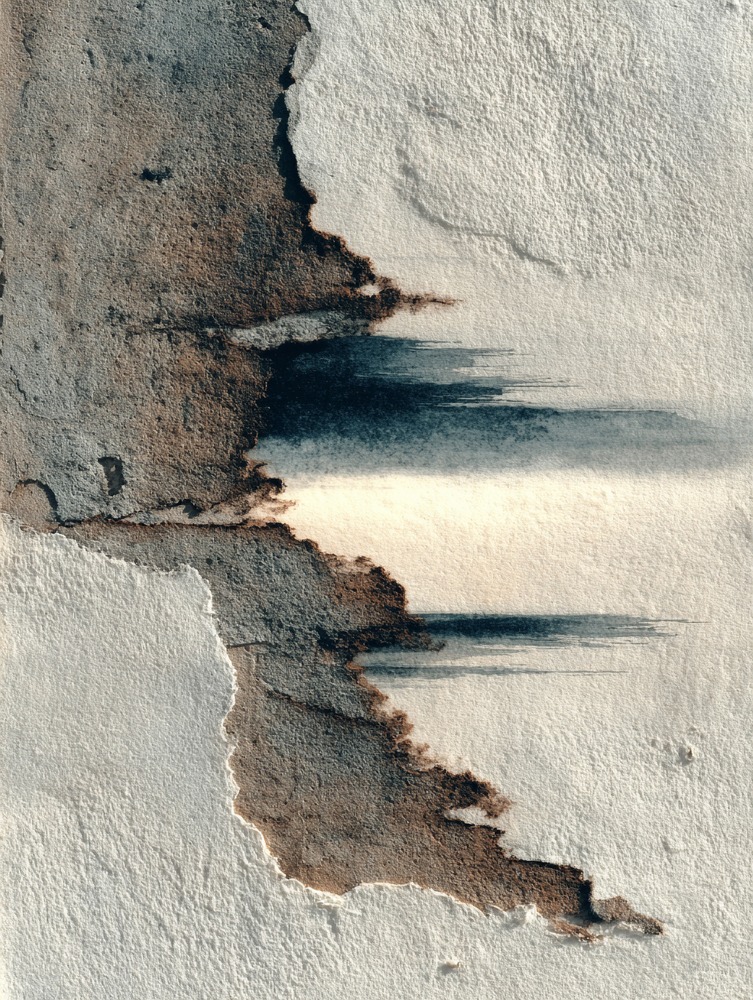 削り取られた跡や深い藍色が、心にすっと馴染む。忙しい日常を忘れて、静かに眺めていたくなる一枚です。