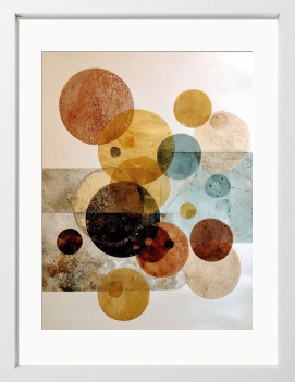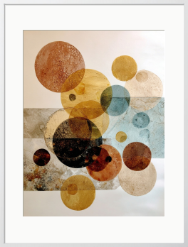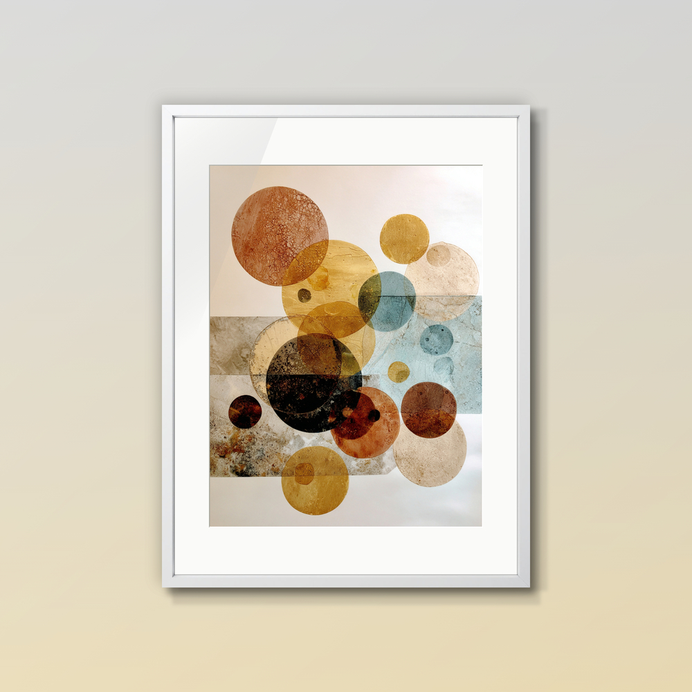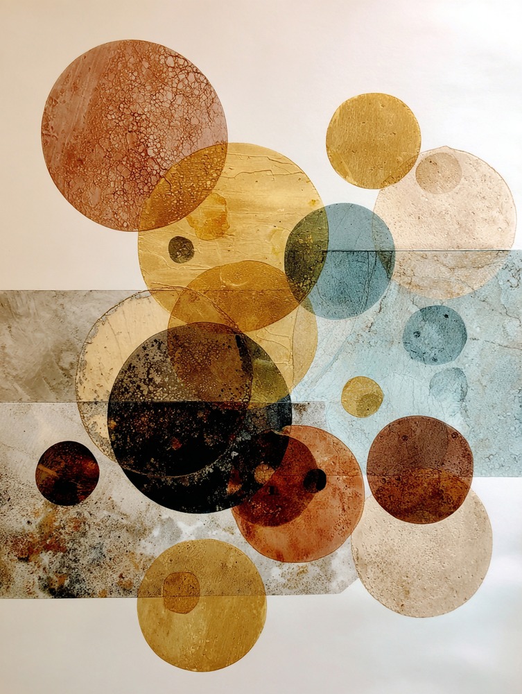 溶け合う色彩と繊細なテクスチャ。幾重にも重なる円が、お部屋に静かな奥行きとリズムをもたらします。