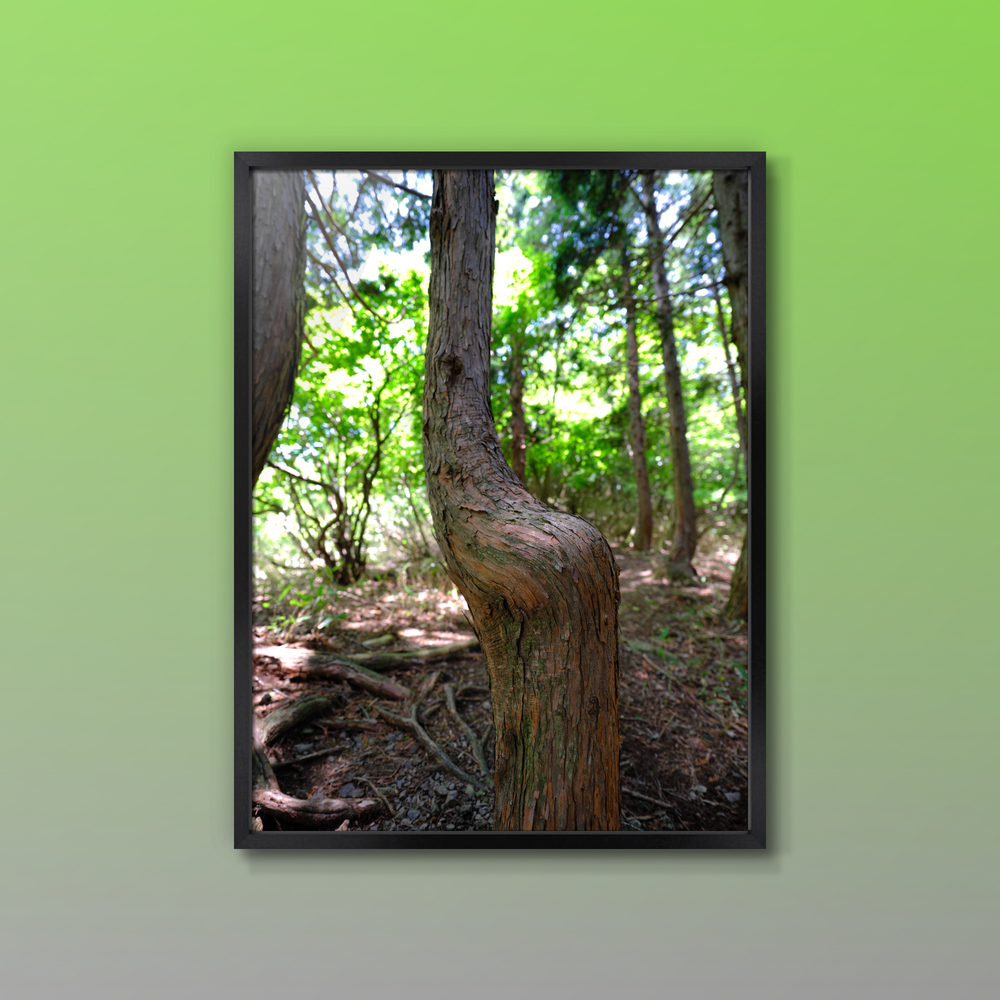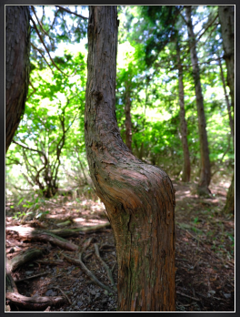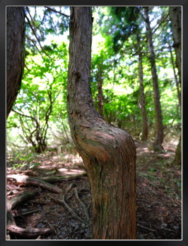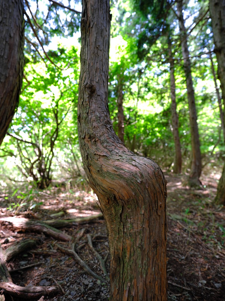 腰掛けみたいに曲がった杉の木 伊吹山周辺で撮影 GFX100S GF23mmF4 R LM WR