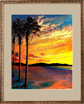 淡路島の南海岸は夕陽の名所でもあります。大きな夕陽が海に沈む様子は一日の終わりを一瞬華やかにしてくれます。寝室に飾っていただくと安らぎの眠りにつくお手伝いになることと思います。