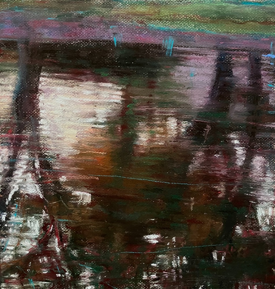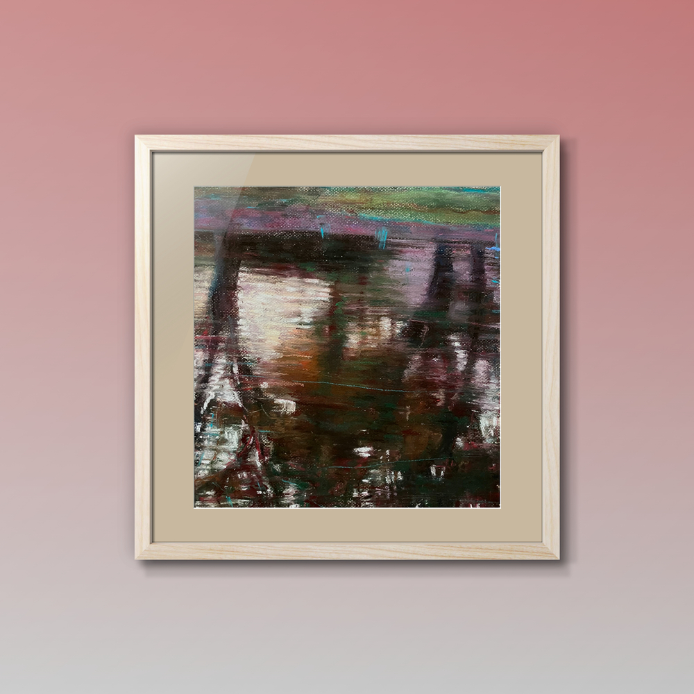 ここ何年かは京都を流れる鴨川をモチーフに描いています。古くから皆に親しまれている場所。其々の日常、其々の時間を過ごしています。私自身を癒される場所。そこには心地良い時間が流れています。この作品は鴨川の水面をクローズアップして描いているシリーズです。水面は常に日常を写し出し、その一瞬一瞬で様々な表情をしています。それはとても美しいです。