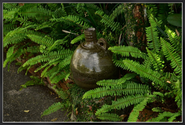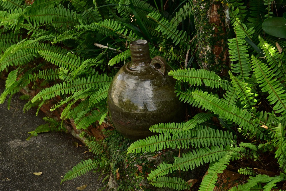 まるでラッピングされたフラワーアレンジ、でも中心には壺がありました。 中城村の中村家付近の歩道です