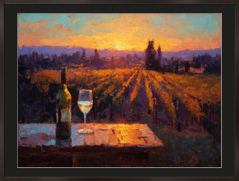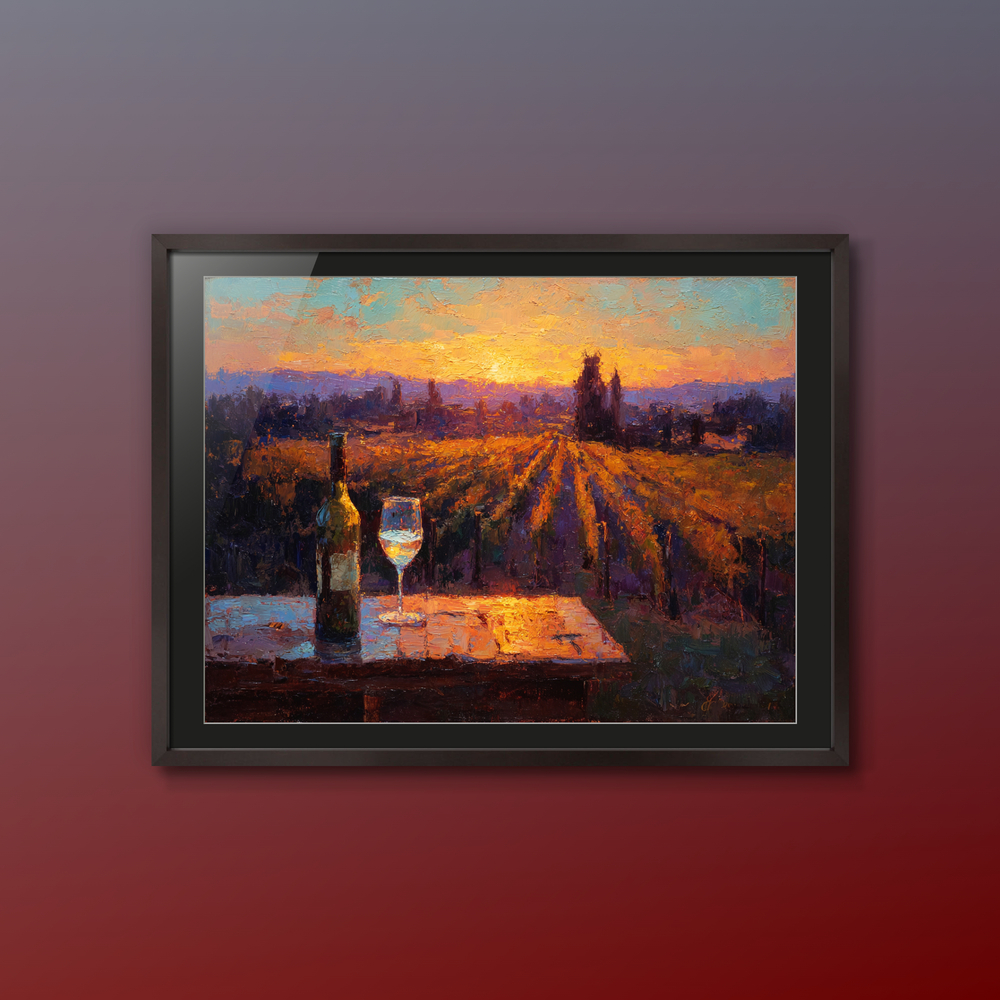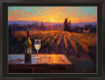 黄金色に染まる大地とグラス。一日の終わりに、沈みゆく太陽の輝きを眺めながら過ごす贅沢なひととき。