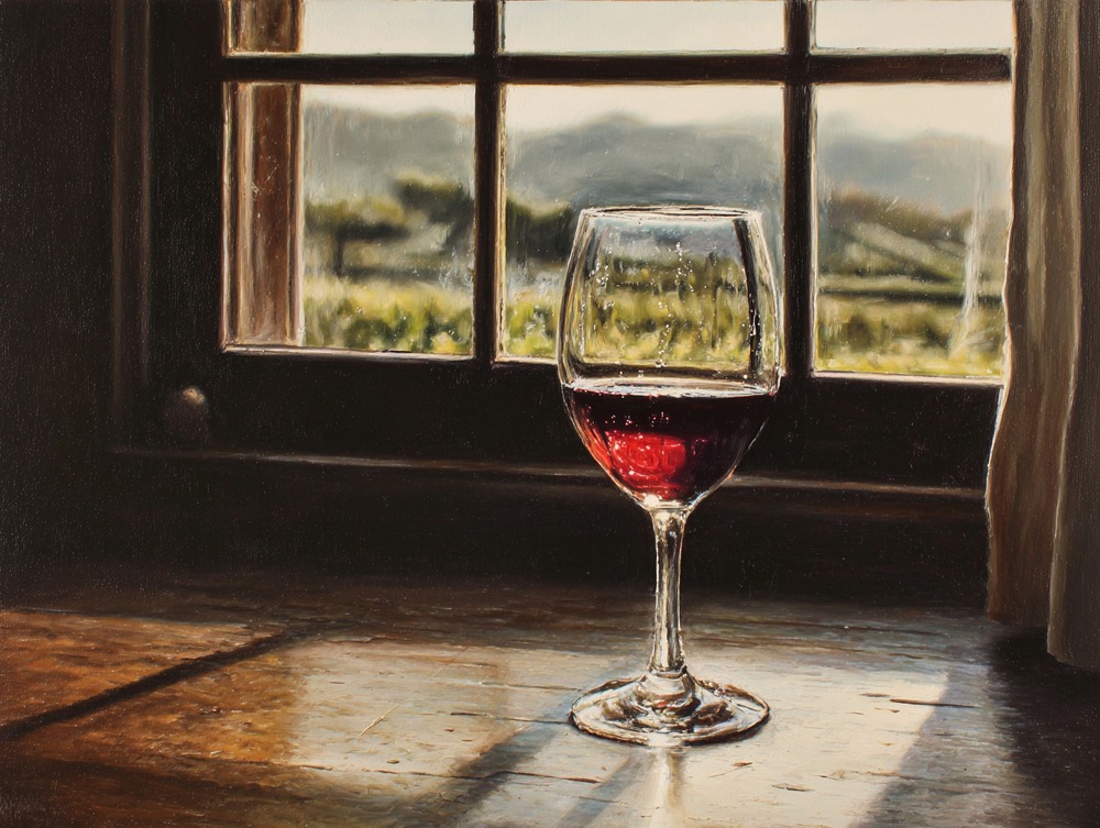 Title:窓辺の赤ワイン/Windowside Red Wine
