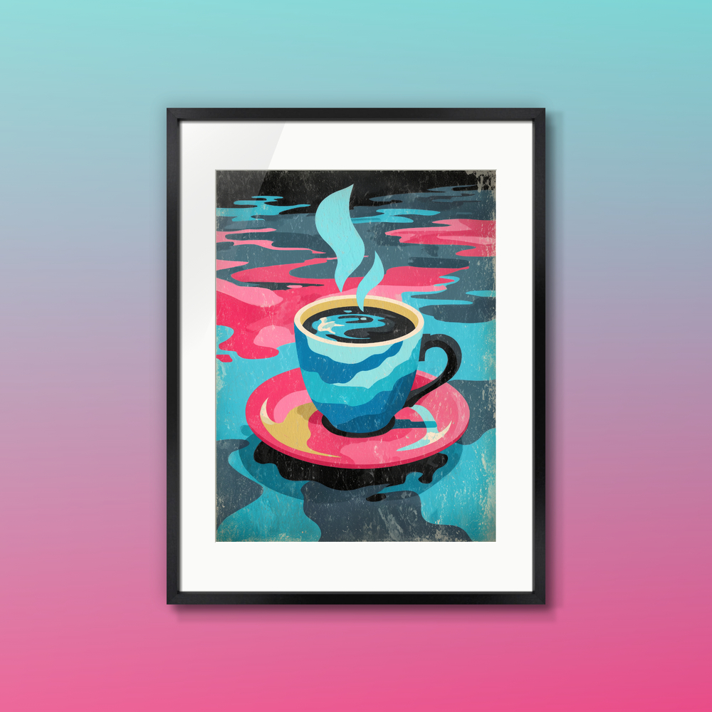 揺らめく水面のような青に、静かな呼吸を重ねて。ヴィンテージな質感で心の波を整える一枚です。
