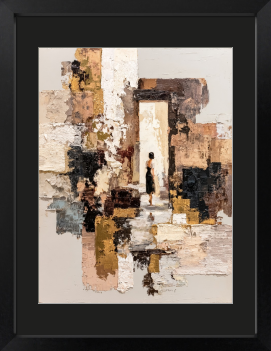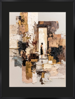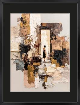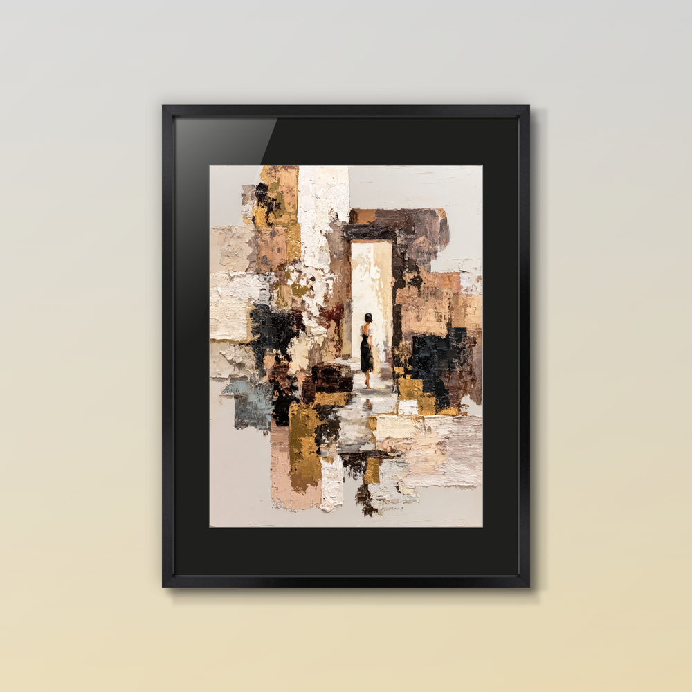 抽象的な色の重なりの中に、一歩踏み出す勇気を描きました。新しい物語が始まるような予感を楽しんで。