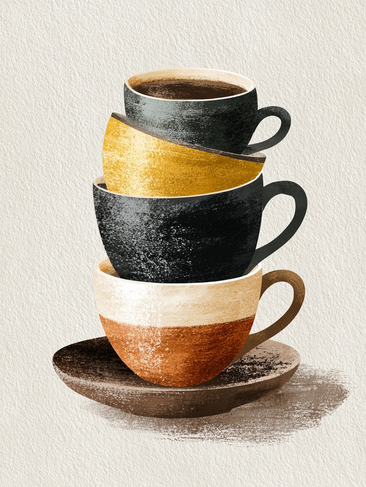 穏やかなひとときを、積み重なるカップの造形で表現しました。素朴な質感が、心に温かな光を灯します。