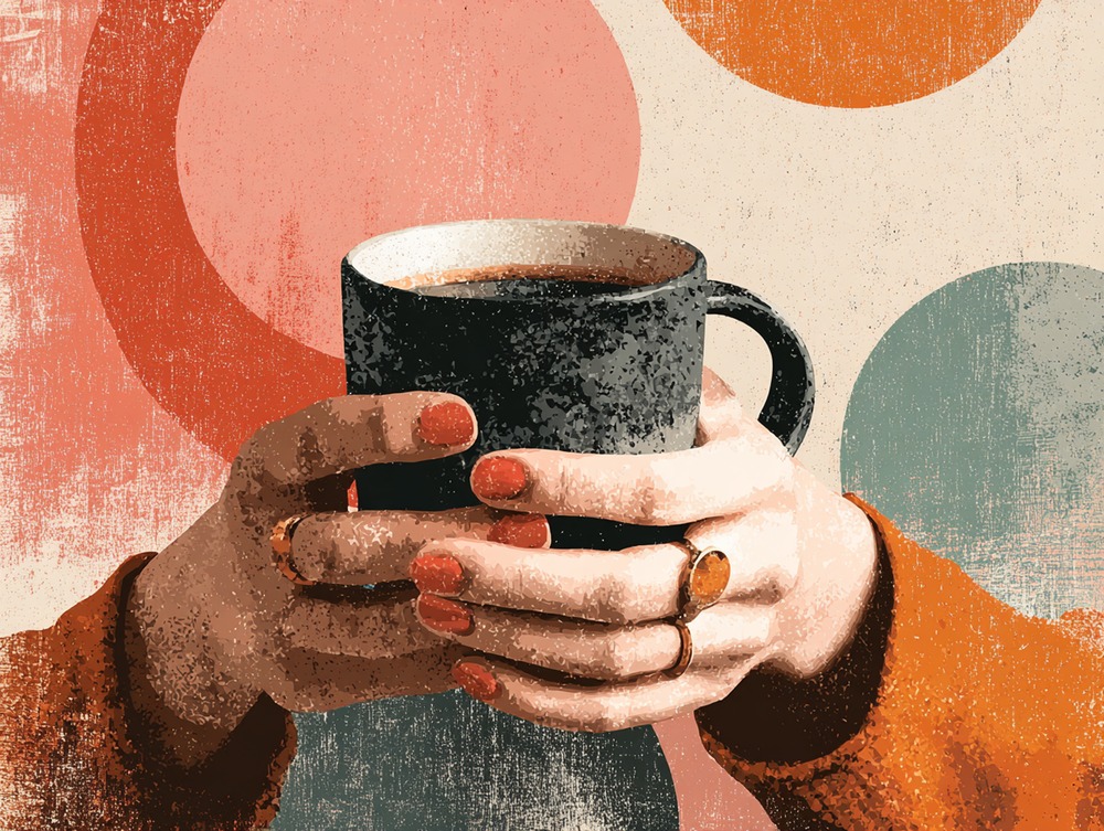 柔らかな体温と、満たされる一杯をポップな色彩で描きました。日常の何気ない幸福に、そっと寄り添います。