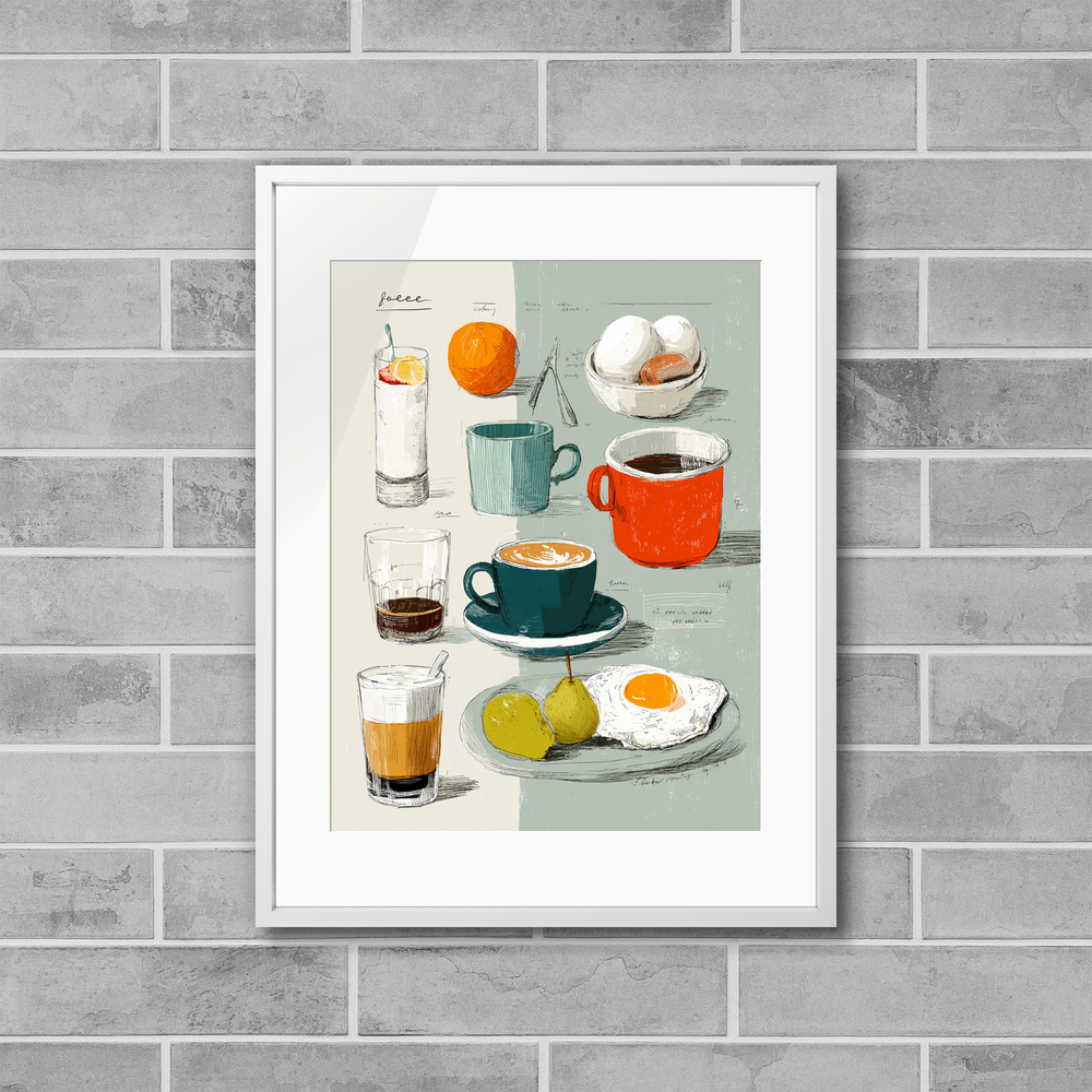 好きなものを集めた図鑑のような楽しさ。手描きの線と色彩が、キッチンの何気ない風景を軽やかに彩ります。
