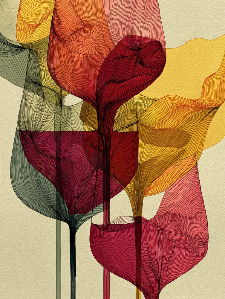 繊細な線が幾重にも重なり、光を湛える器のような花を描きました。心を満たす、透明感のあるひとときを。