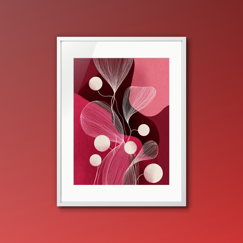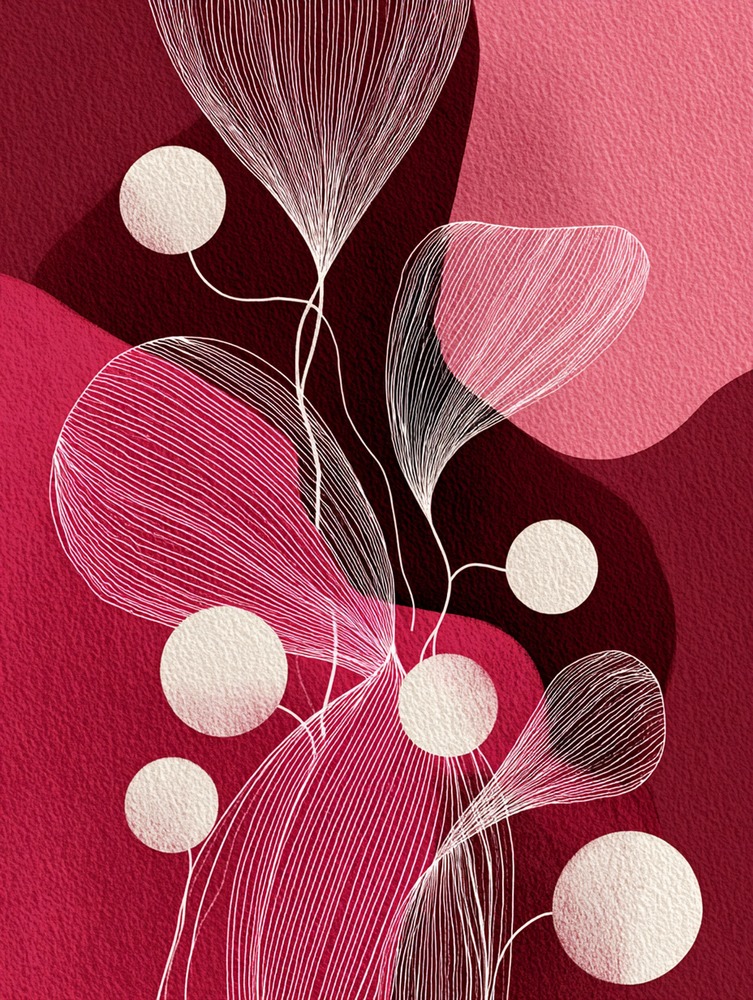 鮮やかな赤の中で、軽やかに舞う光の粒。新しい命が芽吹くような、ポジティブなエネルギーをくれる一枚です。