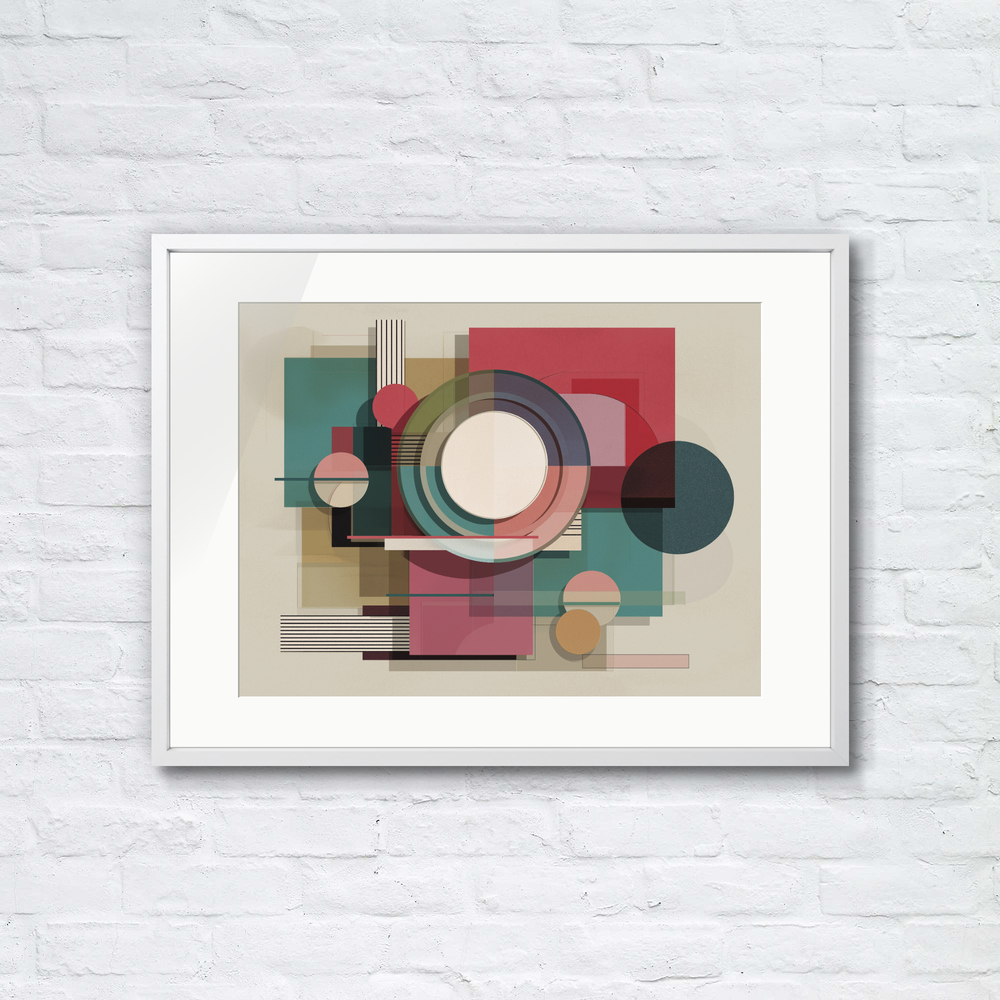 色が透け、形が交差する瞬間に生まれる新しい発見。あなたの思考に静かに寄り添う一枚を、お部屋の特等席に。
