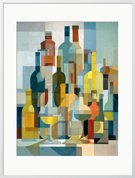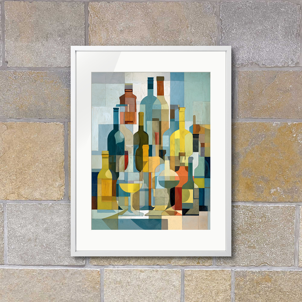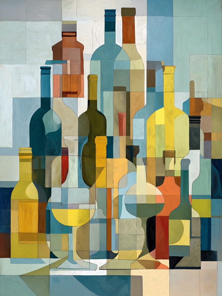 重なり合うボトルの影が、心地よいリズムを刻む。穏やかな光が差し込む部屋で、静かに眺めていたい一枚。
