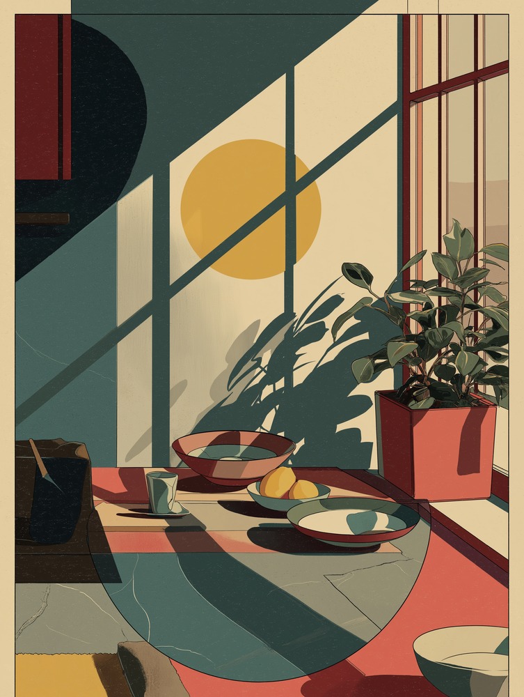 窓から差し込む、あたたかな光。一日の終わりに訪れる、静かで穏やかな時間を切り取りました。