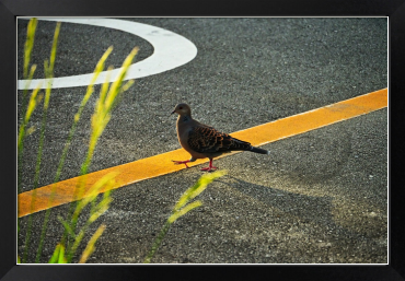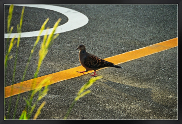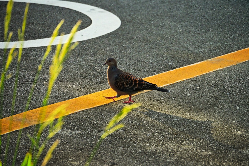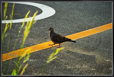 朝の駐車場で陽気にステップを踏むかのようなキジバトと出会いました。
