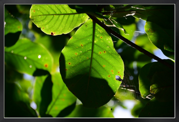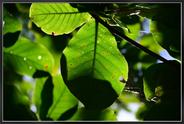 Title:モモタマナの葉がある木陰