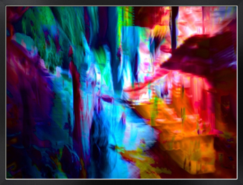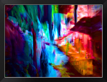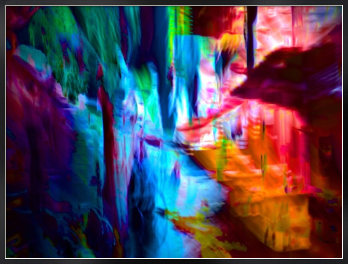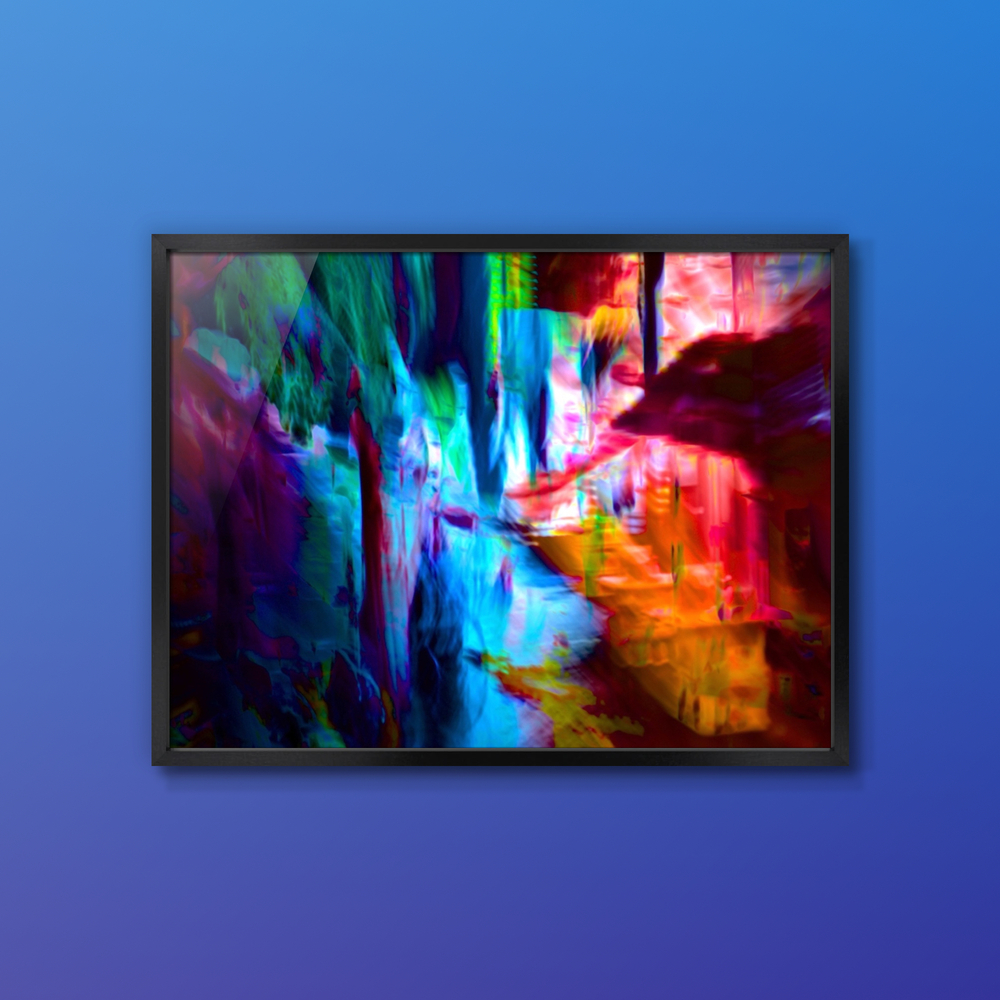 本作「Convergence Corridor」は、光と色彩が奥へ向かって収束し、都市の輪郭が揺らぎながらひとつの流路へ変化していく瞬間を捉えた作品です。青と赤橙の鮮やかな対比は強い視覚的印象を生みながら、その奥に見えない経路や秩序を感じさせます。境界が溶け、面と光が交差する中で通路のような構造が静かに立ち上がり、evetailが掲げる「計算された美、偶然の感動。」と「数理と感性の交差点」を、収束と流動の現象として映し出しています。