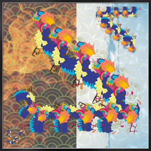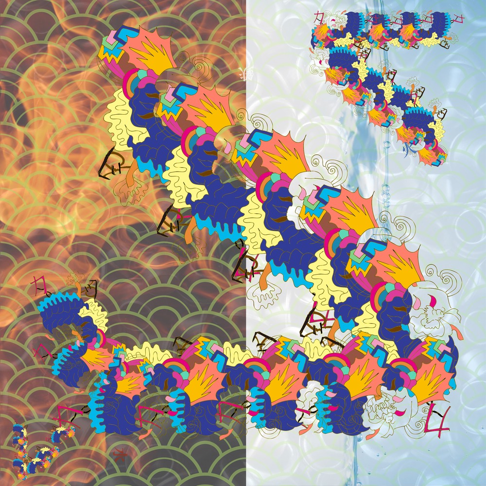 【DRAGON-PHOENIX WIND】 Dragon-phoenix winds that bind fire and water Vientos de dragón y fénix que unen el fuego y el agua 龍鳳風環水火 용과 불사조, 바람, 물, 불 火と水をくくる龍凰の風
