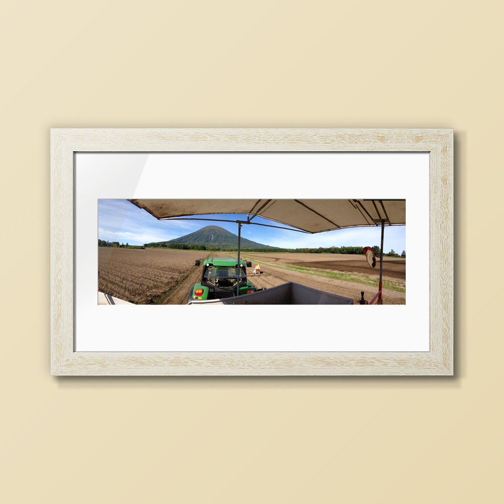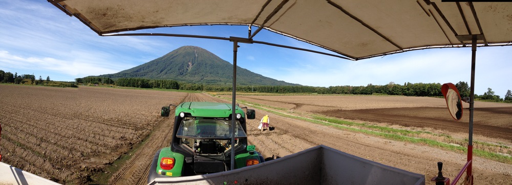 9月 じゃがいも収穫作業風景と羊蹄山