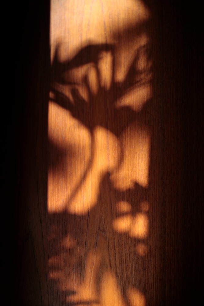 自邸の壁に映し出された、植物のシルエット。