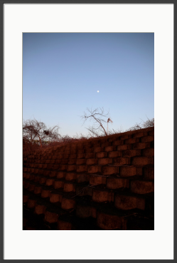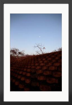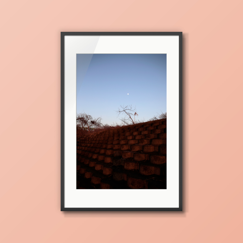 規則正しく並ぶブロックの陰影と、その上に広がる澄んだ空を捉えました。 無機質な構造物と、遠くにわずかに見える枝のシルエットが作る、独特の奥行き感。 落ち着いたトーンの構成は、空間に静かなリズムと深みをもたらし、モダンなインテリアに自然と馴染みます。