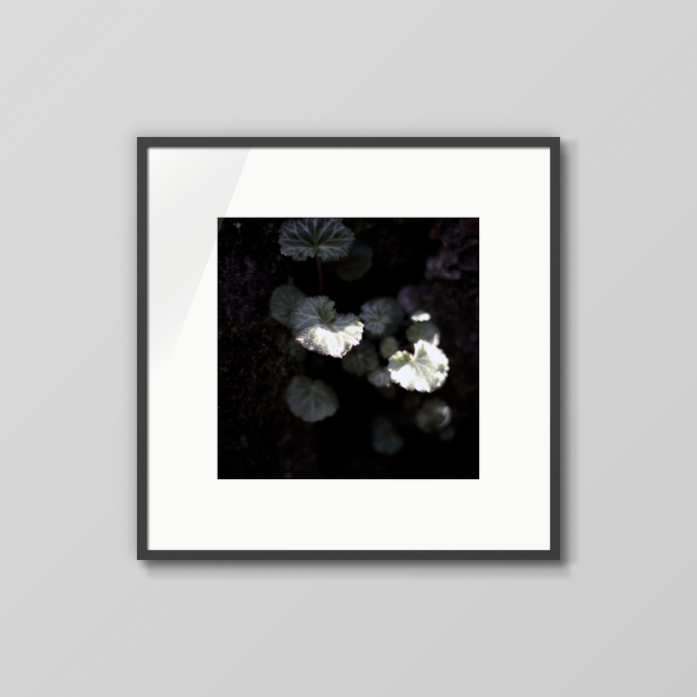 あえてディテールをぼかすことで、葉に落ちる光の美しさそのものを抽出しました。 静かな夜や、雨の日の落ち着いた空気感。 抽象画のような佇まいは、寝室や書斎など、心を落ち着かせたい場所のインテリアとして静かに寄り添います。