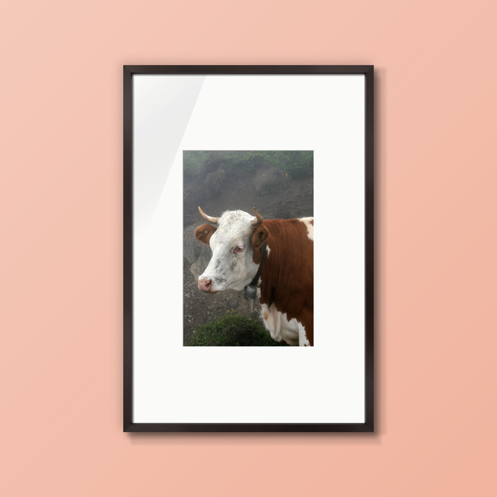 アルプスの旅て、静かに佇む一頭の牛を捉えました。 その素朴でありながら凛とした姿は、リビングや書斎に「どこか遠くの景色」を運んできてくれます。 雄大な自然や旅を愛する方のインテリアや、空間に奥行きを持たせたい場所のアクセントに。