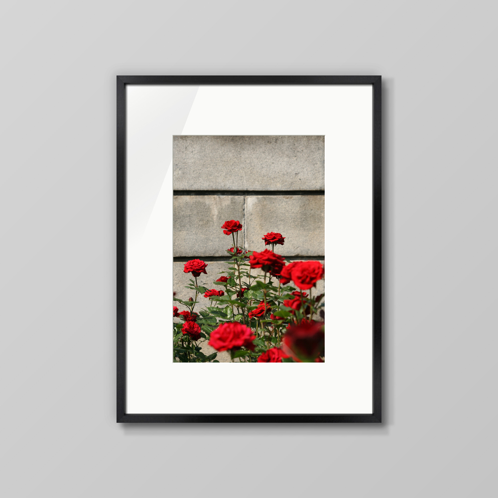 光を吸い込むような深い赤色のバラを、ドラマチックな陰影のなかで捉えました。 ベルベットのような花弁の質感と、幾何学的なシャドウが生み出すコントラスト。 寝室のヘッドボード上や、落ち着いたトーンの書斎など、空間に心地よい緊張感とエレガンスをもたらすことを願って。