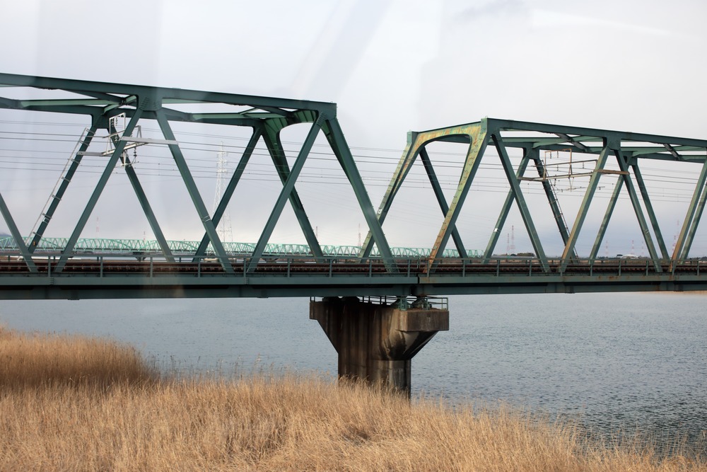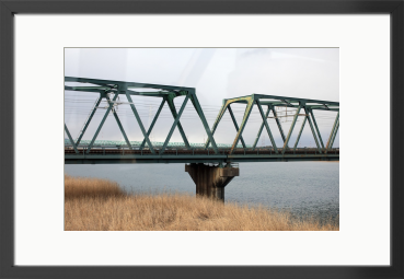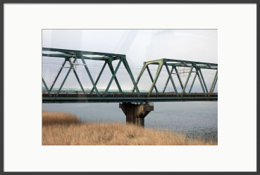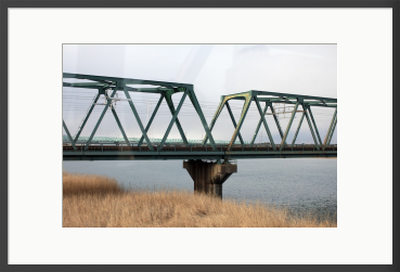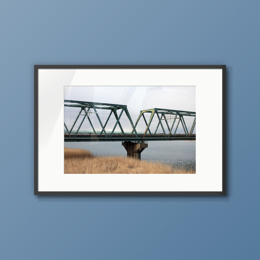日常の風景に潜む、静かな構造美。 幾重にも重なる鉄骨のトラス構造が、リズムを刻むように川を渡る風景。 冬枯れの柔らかな質感と、無機質な鉄のコントラストを、淡い冬の光の中で丁寧に切り取りました。 モダンなリビングや仕事に集中したい書斎の壁面に、心地よい安定感と奥行きをもたらすことを願って。