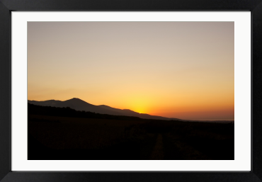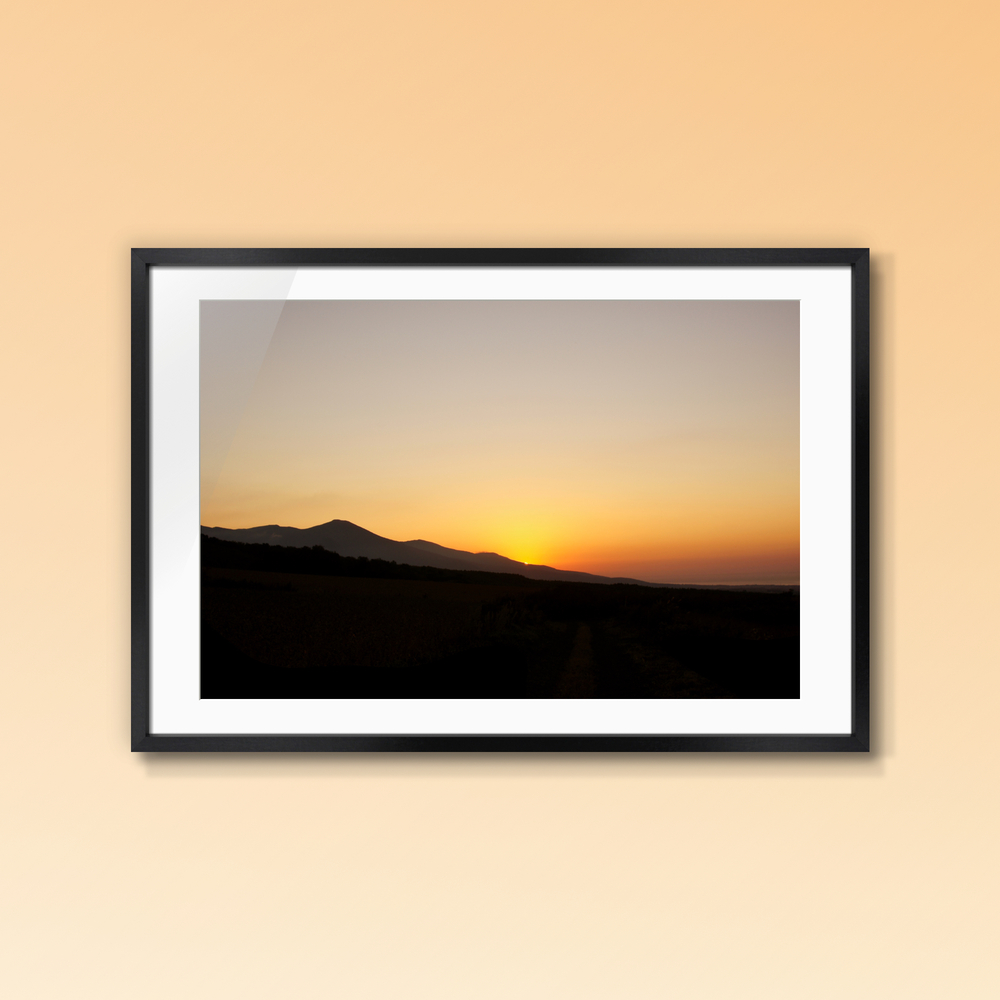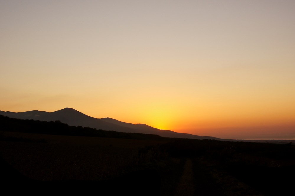 日本海に沈む夕陽に照らされる岩内岳の稜線 岩内岳は北海道西部に位置する日本海に面した山