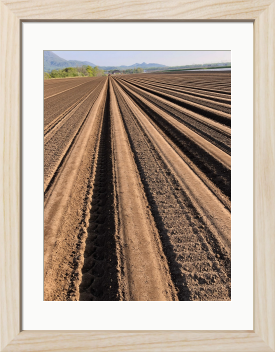 植え付け作業が終わったばかりの長い長い畝 北海道のじゃがいもの植え付け風景