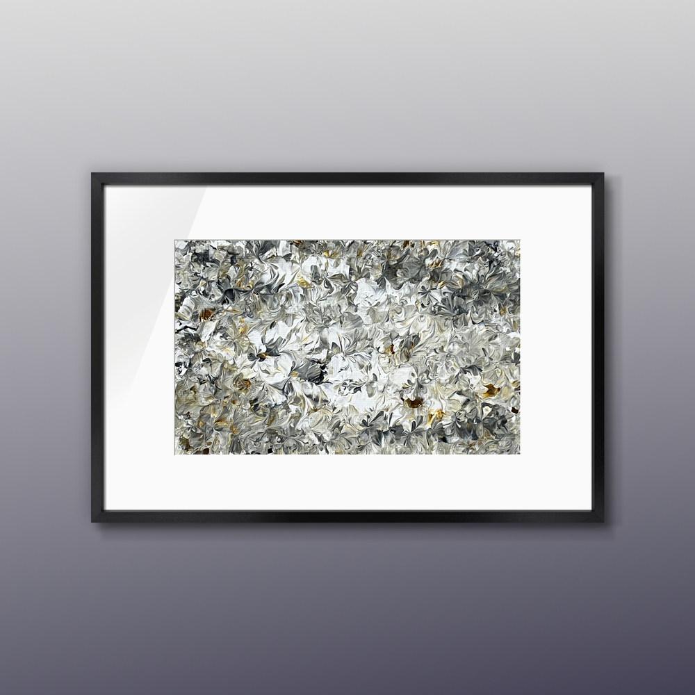 A luminous abstract acrylic painting that softly immerses you in the ethereal glow of moonlight white marble. Delicate swirls of pure, glowing white flow gracefully across the canvas, accented by subtle silver and misty gray veins that evoke timeless marble polished under a gentle moon. This healing artwork gently purifies the heart, washing away daily noise and fatigue while awakening a profound sense of inner clarity, quiet eternity, and serene renewal.