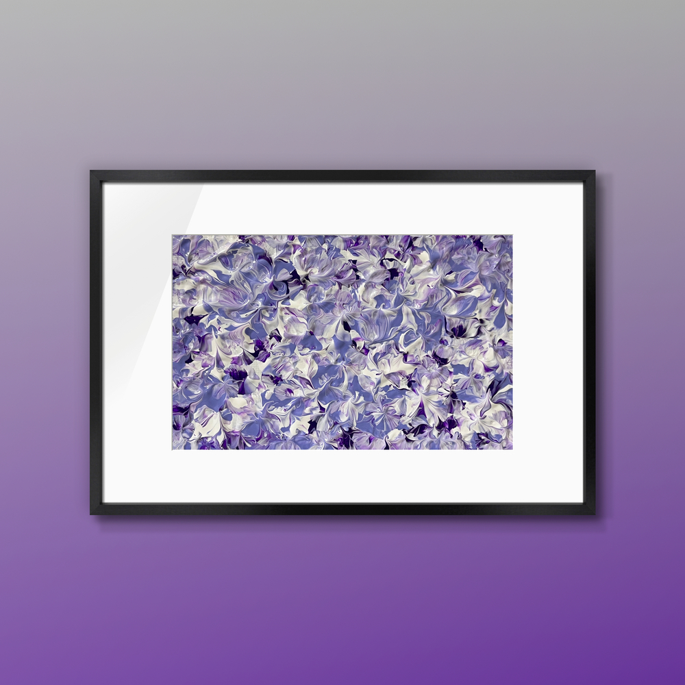 An acrylic abstract painting blending serene purple and white hues, inviting viewers into a dreamy world reminiscent of wildflowers shrouded in nighttime mist. Display it in your living or creative space to enhance the atmosphere with elegance and a lingering sense of calm.