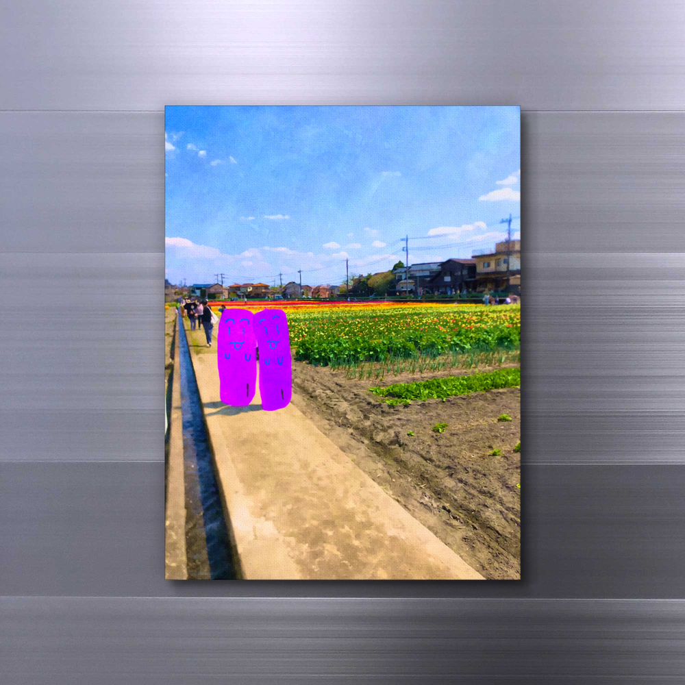 私は「気楽に今を楽しむ」をコンセプトに各地に赴いて人が写り込んだ風景を撮り、その実際の写真を絵画風にしてキャラクター(焦喰)を被せて観光絵画を制作しています。観光や散歩や迷走が好きなので、その瞬間を気楽に楽しんだ気持ちを伝えられたらと思います。制作過程でこだわっているのは観光や迷走を義務感なく楽しむことです。