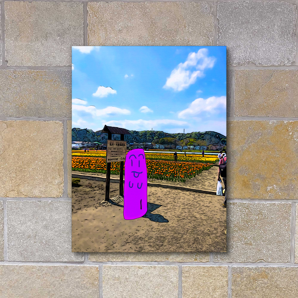私は「気楽に今を楽しむ」をコンセプトに各地に赴いて人が写り込んだ風景を撮り、その実際の写真を絵画風にしてキャラクター(焦喰)を被せて観光絵画を制作しています。観光や散歩や迷走が好きなので、その瞬間を気楽に楽しんだ気持ちを伝えられたらと思います。制作過程でこだわっているのは観光や迷走を義務感なく楽しむことです。