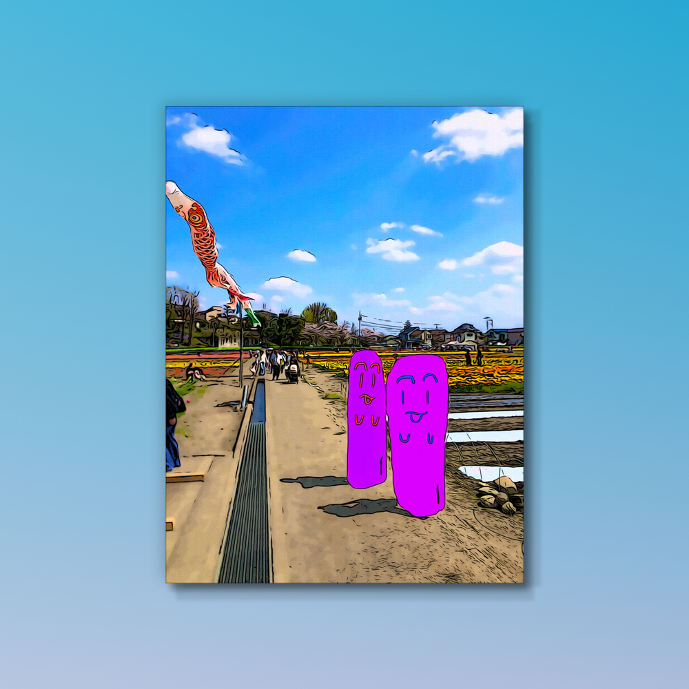 私は「気楽に今を楽しむ」をコンセプトに各地に赴いて人が写り込んだ風景を撮り、その実際の写真を絵画風にしてキャラクター(焦喰)を被せて観光絵画を制作しています。観光や散歩や迷走が好きなので、その瞬間を気楽に楽しんだ気持ちを伝えられたらと思います。制作過程でこだわっているのは観光や迷走を義務感なく楽しむことです。 気楽で楽しく明るい観光彩画です。