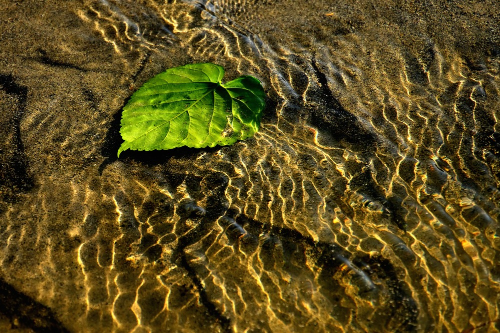 Title:波打ち際にゆらめく光と葉