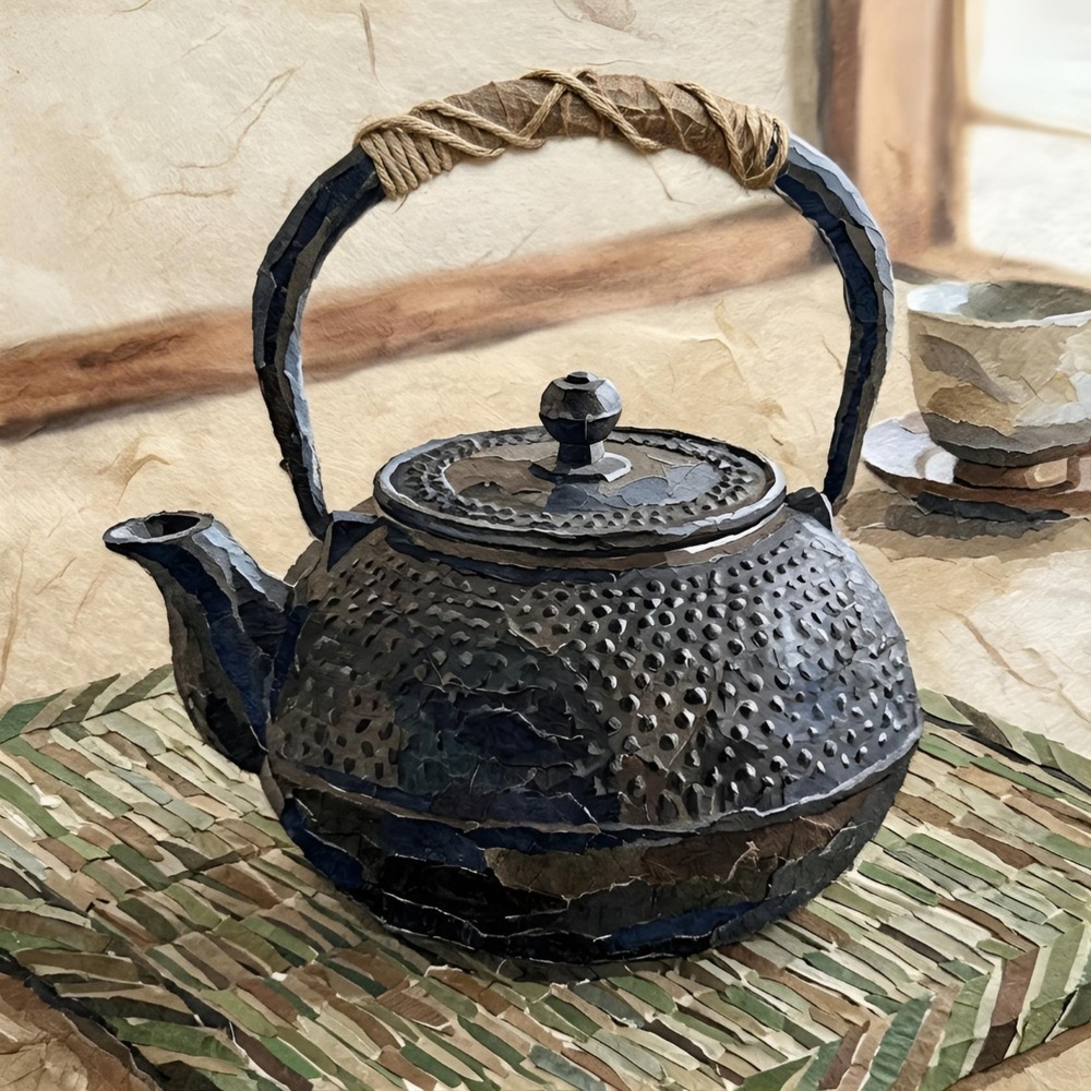 Title:ちぎり絵風に描いた、南部鉄器