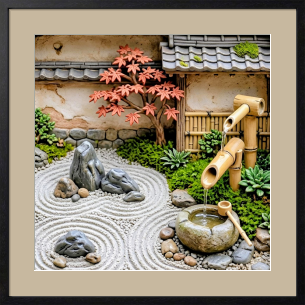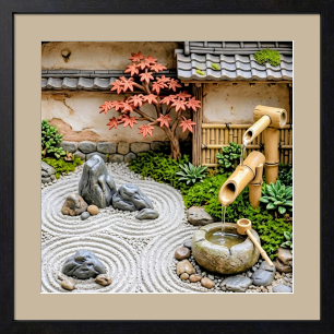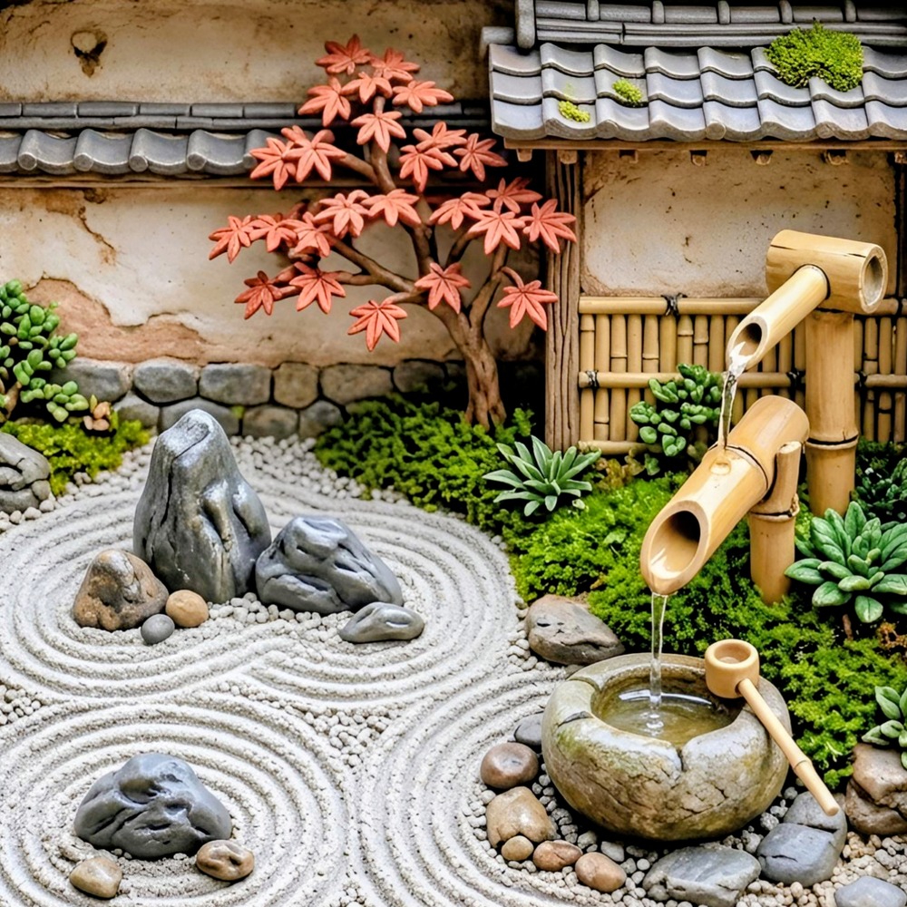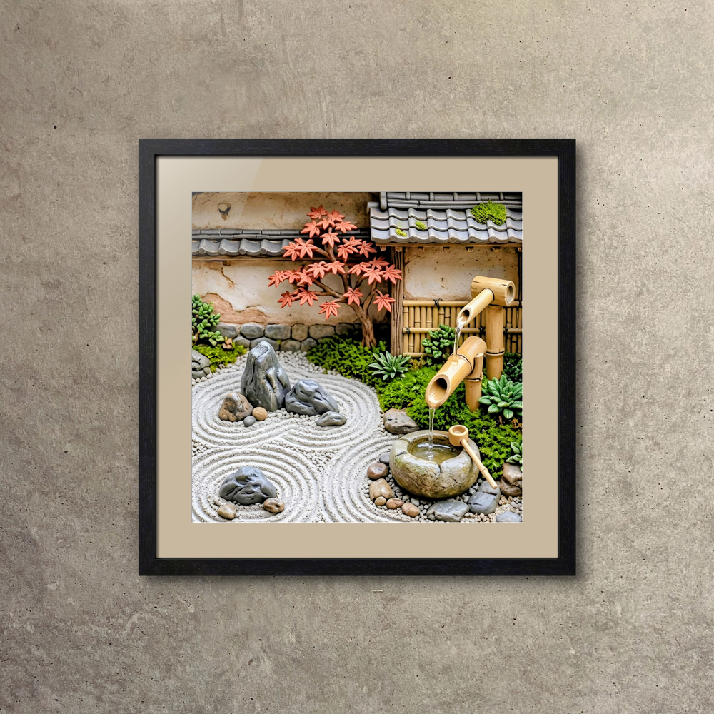 風流な枯山水の庭と獅子落としをクレイアート風に描きました。