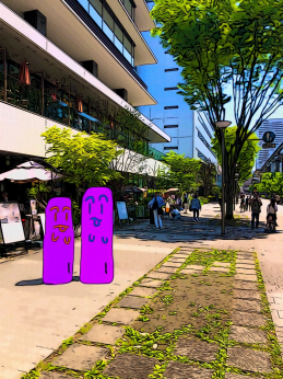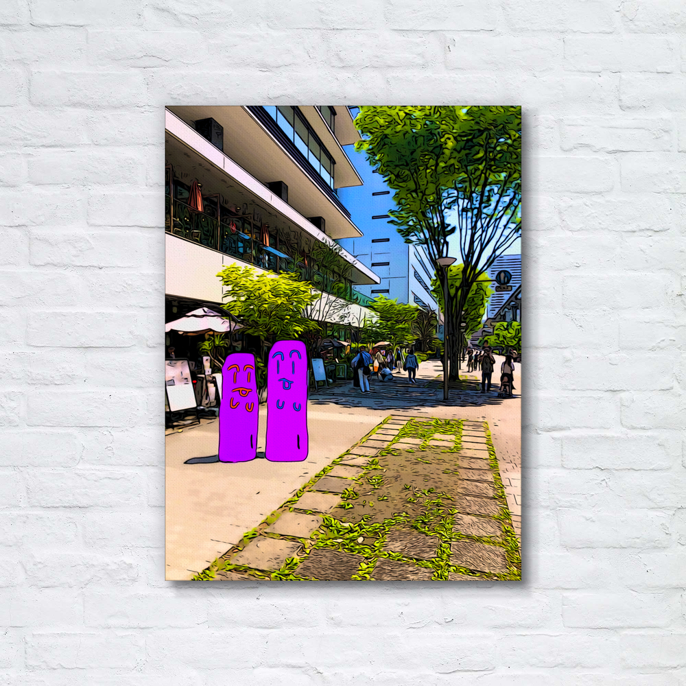 私は「気楽に今を楽しむ」をコンセプトに各地に赴いて人が写り込んだ風景を撮り、その実際の写真を絵画風にしてキャラクター(焦喰)を被せて観光絵画を制作しています。観光や散歩や迷走が好きなので、その瞬間を気楽に楽しんだ気持ちを伝えられたらと思います