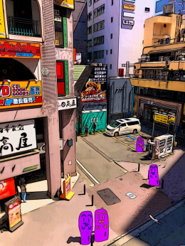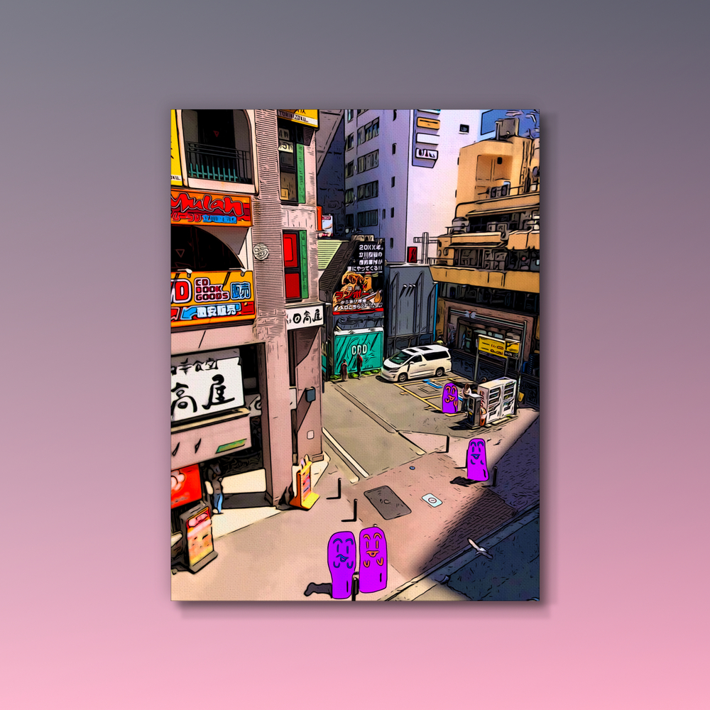 私は「気楽に今を楽しむ」をコンセプトに各地に赴いて人が写り込んだ風景を撮り、その実際の写真を絵画風にしてキャラクター(焦喰)を被せて観光絵画を制作しています。観光や散歩や迷走が好きなので、その瞬間を気楽に楽しんだ気持ちを伝えられたらと思います。