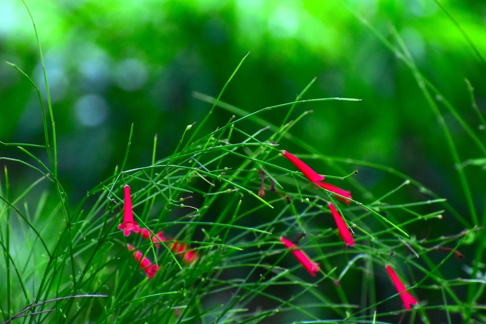 優美な曲線を描きながら垂れる可憐な花です。(沖縄ライカムのミニガーデンにて)