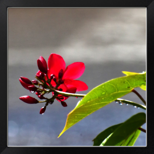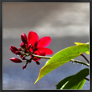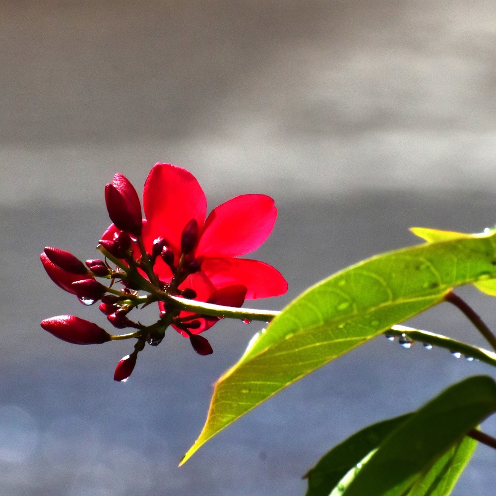 沖縄ライカムのエントランス沿いに植えられていました。雨上がりの雫が輝く美しいい時です。
