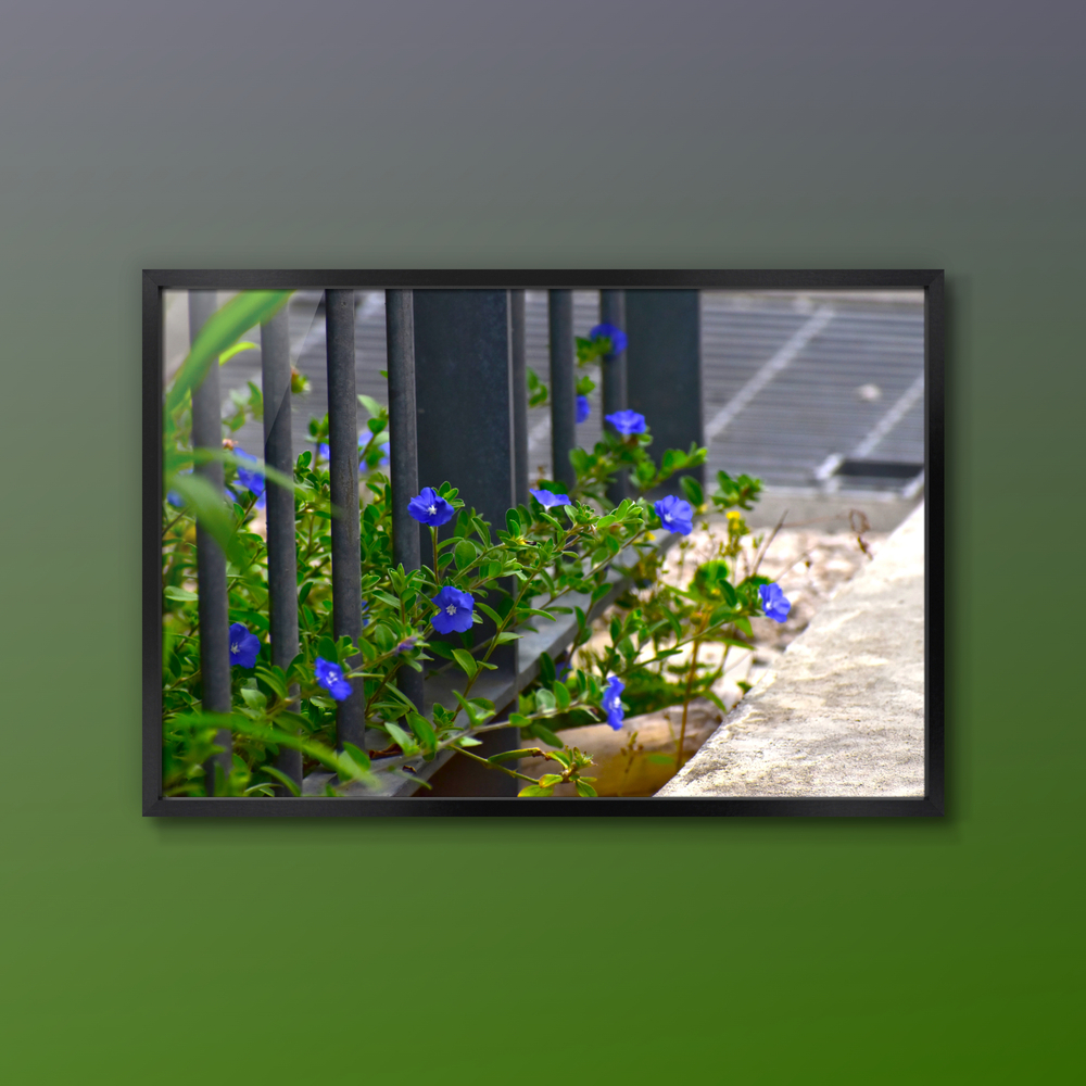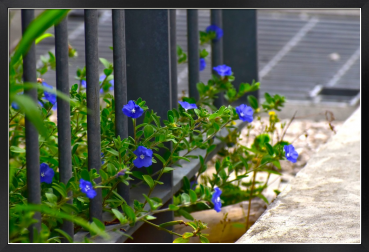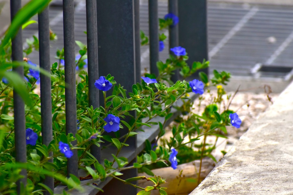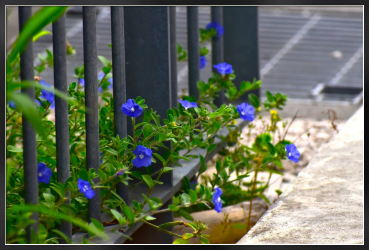 Title:柵からはみ出す青いアメリカンブルー
