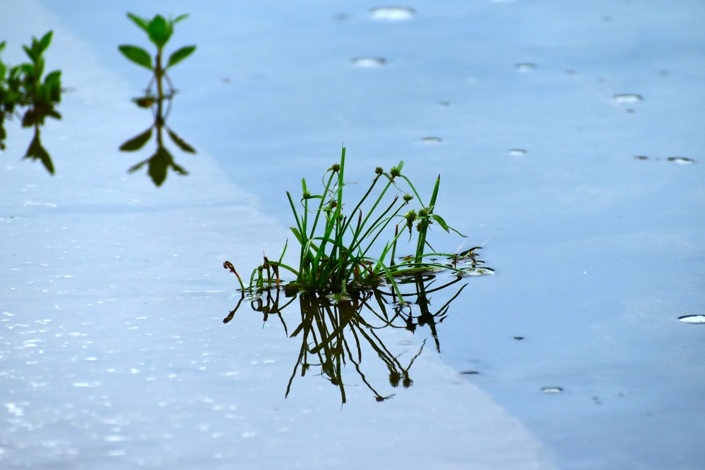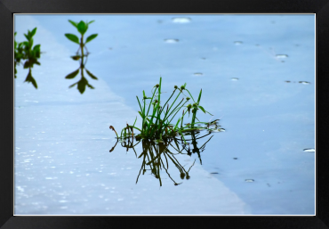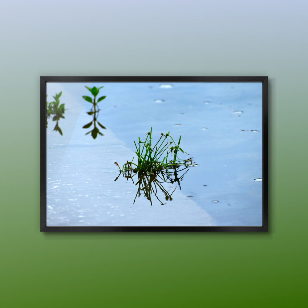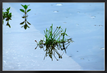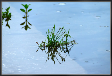 Title:水の反射と草