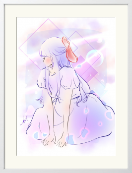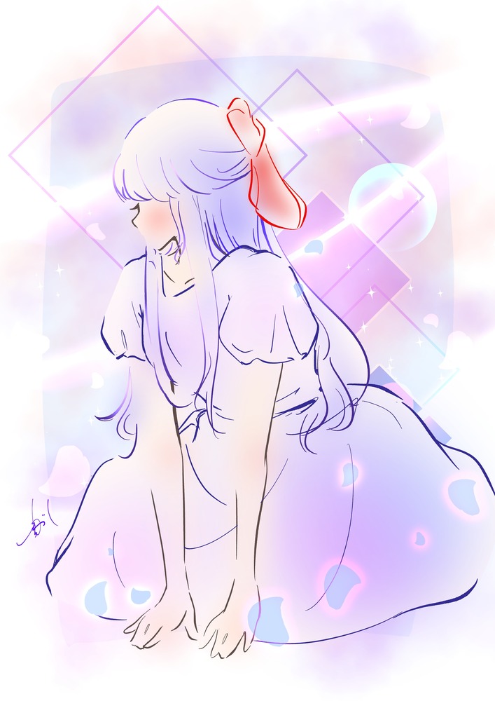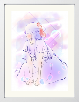 淡い紫の象徴プリンセスが、幻想的な光と泡に包まれ優しく座る夢のひととき。